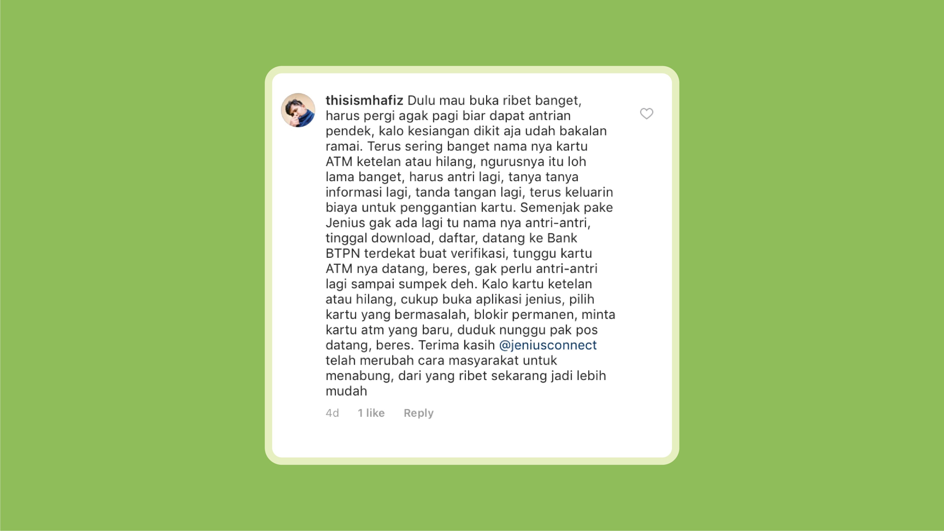 Pasti banyak yang merasakan keribetan yang disebut @thisismhafiz. Sepuluh tahun lalu, kamu harus bela-belain datang pagi ke kantor cabang untuk mengantisipasi antrean yang mengular mulai dari membuka rekening hingga mengurus setiap ada masalah atau kebutuhan mengenai rekening kamu.