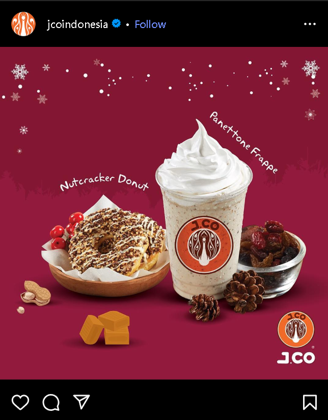 Setelah mengirim ke teman-teman dan saudara, gak ada salahnya bawa sesuatu untuk keluarga di rumah juga. Nutcracker Donut lengkap dengan Panettone Frappe bisa menambah keceriaan keluarga dan sekaligus menyegarkan. Jangan lupa beli J.Co-nya di hari Minggu supaya kamu bisa menikmati promo beli 6 dapat 12 dengan kartu debit Jenius. Dijamin, Malam Natal kamu pasti lebih manis.