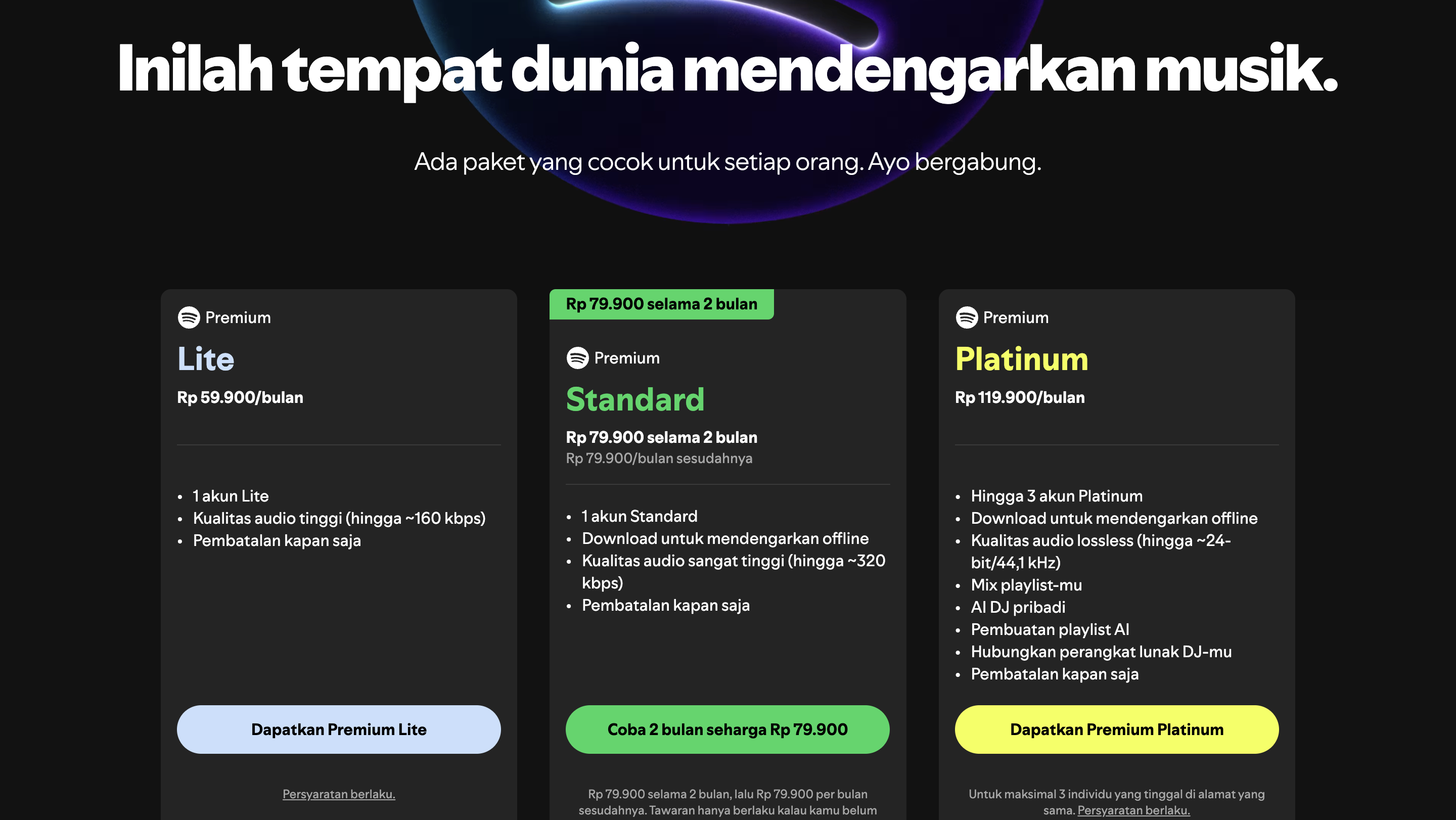 1. Klik Dapatkan Premium di banner yang muncul pada homepage Spotify.