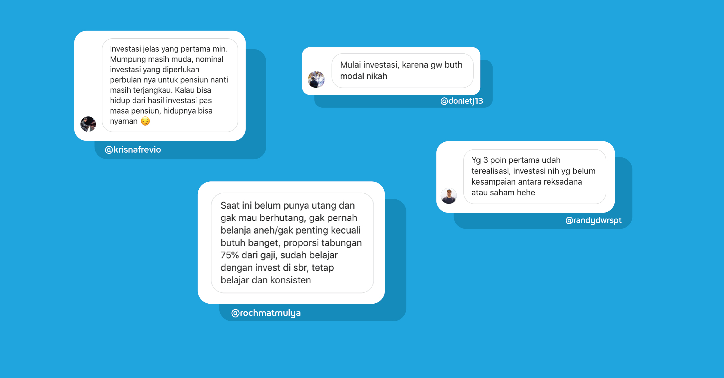 Ada yang punya impian menyisihkan uang untuk liburan setahun dua kali, ada yang bercita-cita membeli apartemen atau rumah, ada juga yang bermimpi memiliki aset satu miliar sebelum usia tiga puluh tahun.