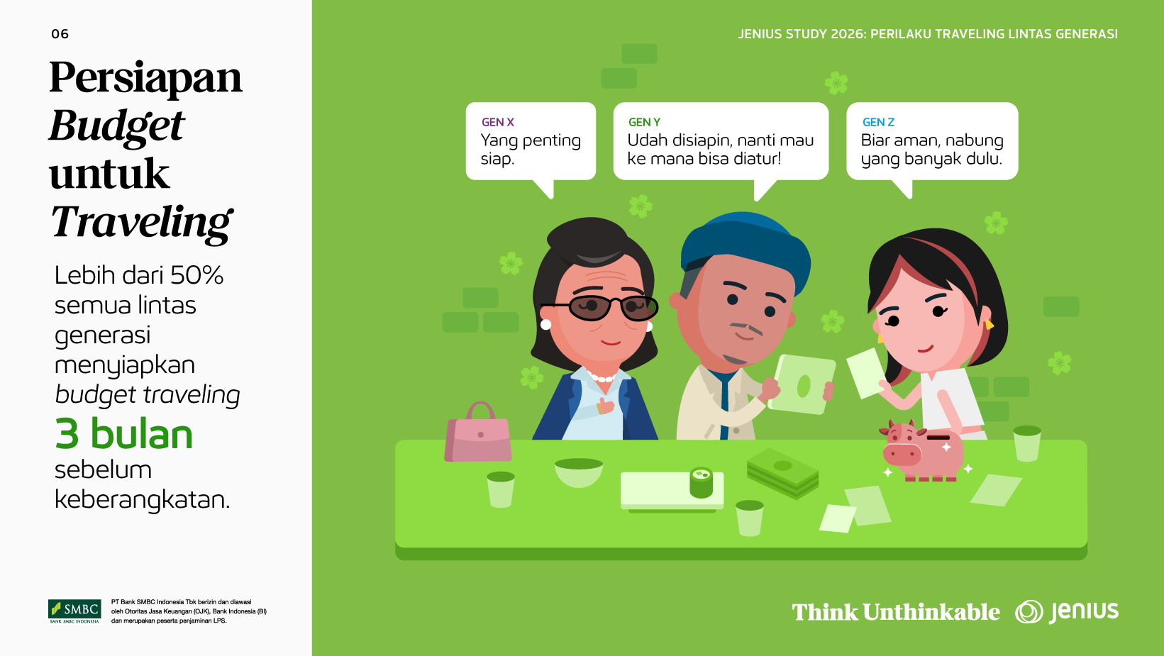 Lebih dari 50% responden Jenius Study 2026: Perilaku Traveling Lintas Generasi menyiapkan budget untuk traveling 3 bulan sebelum keberangkatan.