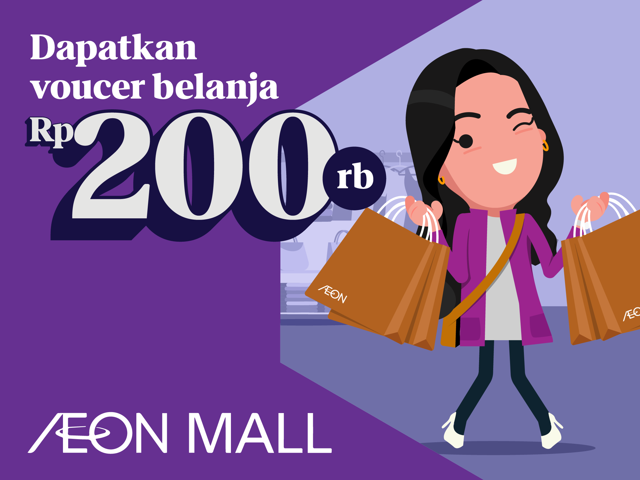 Belanja semua kebutuhanmu di AEON Mall dan dapatkan tambahan voucer belanja Rp200.000 pakai Kartu Debit dan Kartu Kredit Jenius!