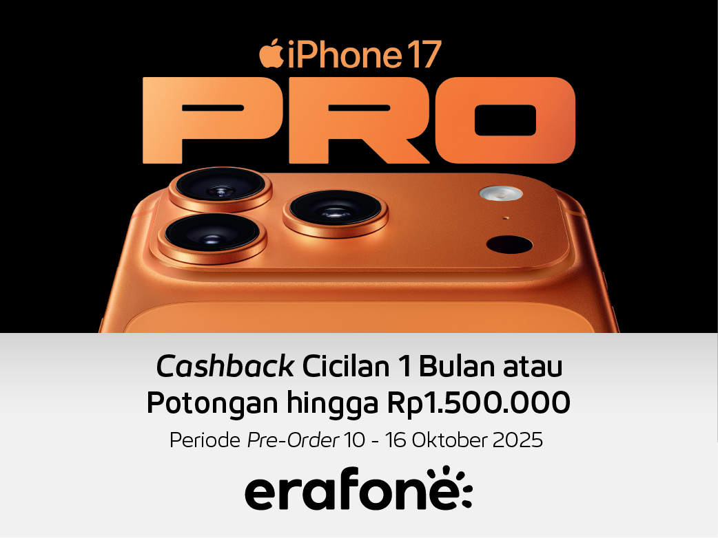 Nikmati cashback cicilan 1 bulan atau potongan harga hingga Rp1.500.000 untuk pre order dan pembelian iPhone 17 di Erafone menggunakan Kartu Kredit Jenius!