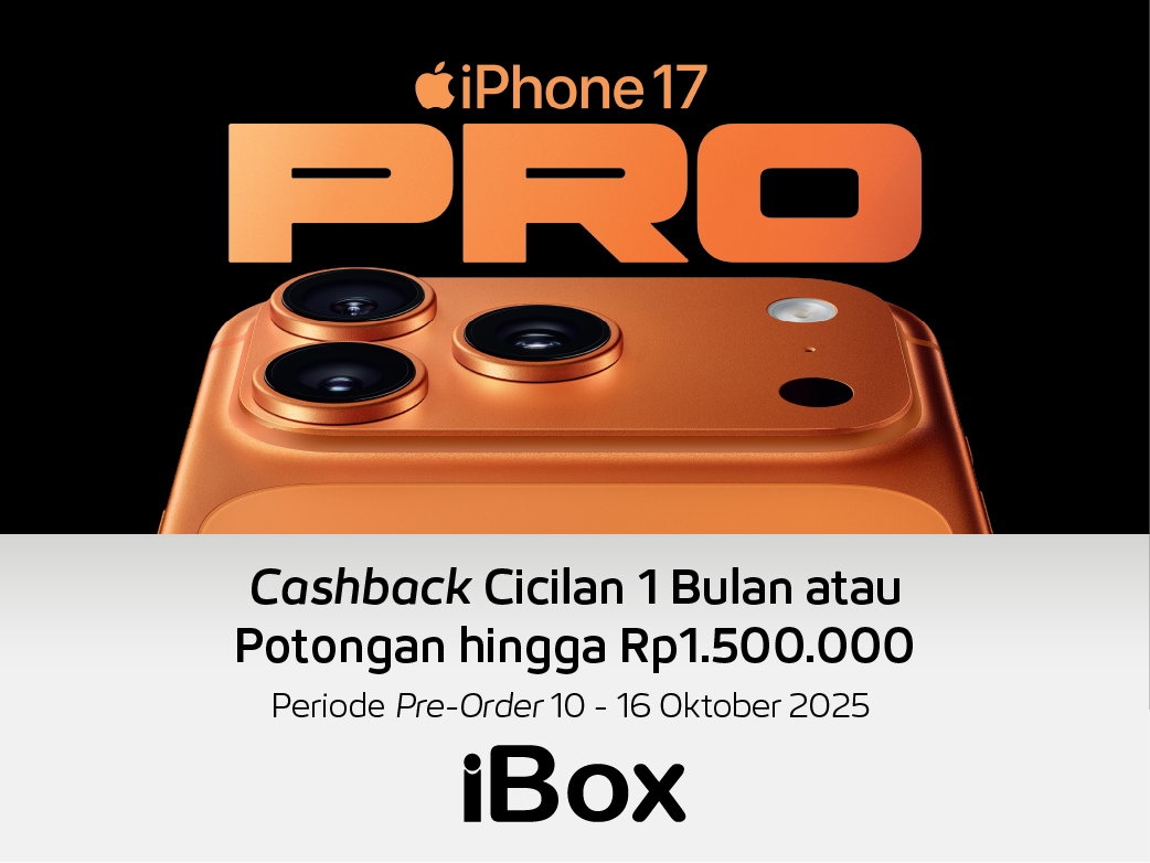 Nikmati cashback cicilan 1 bulan atau potongan harga hingga Rp1.500.000 untuk pre order dan pembelian iPhone 17 di iBox menggunakan Kartu Kredit Jenius!