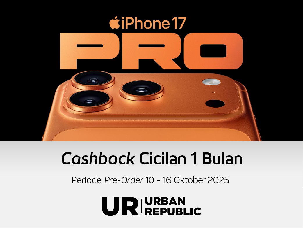 - Promo cashback cicilan 1 bulan berlaku untuk 40 transaksi pertama di Urban Republic khusus untuk pembelian iPhone 17.