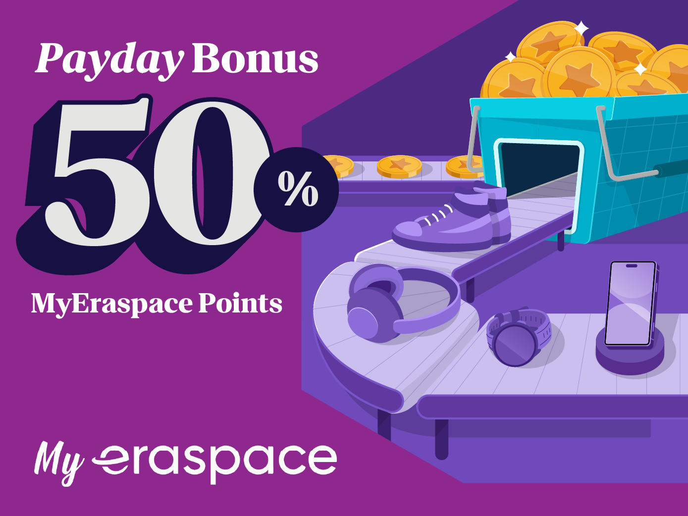 Dapatkan bonus 50% MyEraspace Points dengan menukarkan Yay Points.