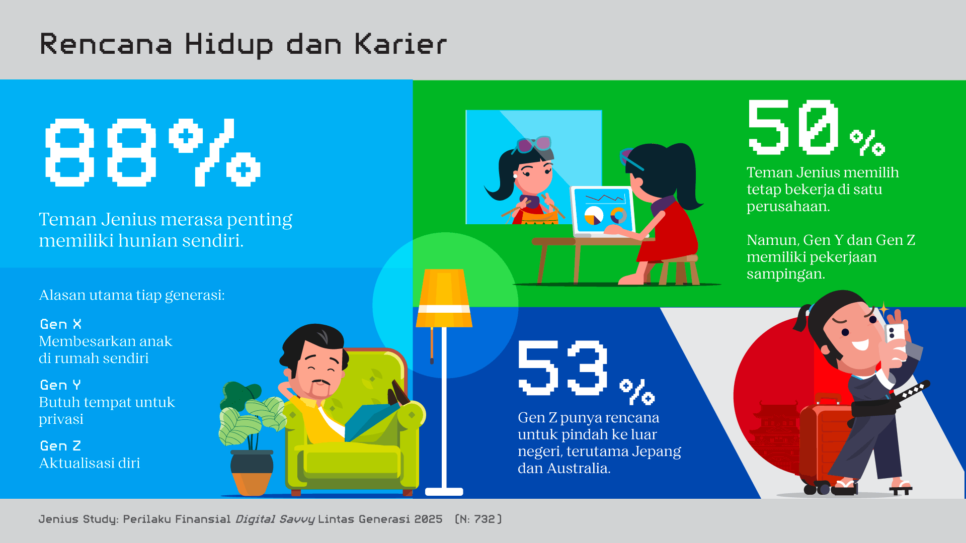 Data Jenius Study: Perilaku Masyarakat Digital Savvy Lintas Generasi 2025 menunjukkan bahwa 88% teman Jenius lintas generasi setuju memiliki hunian merupakan hal fundamental.