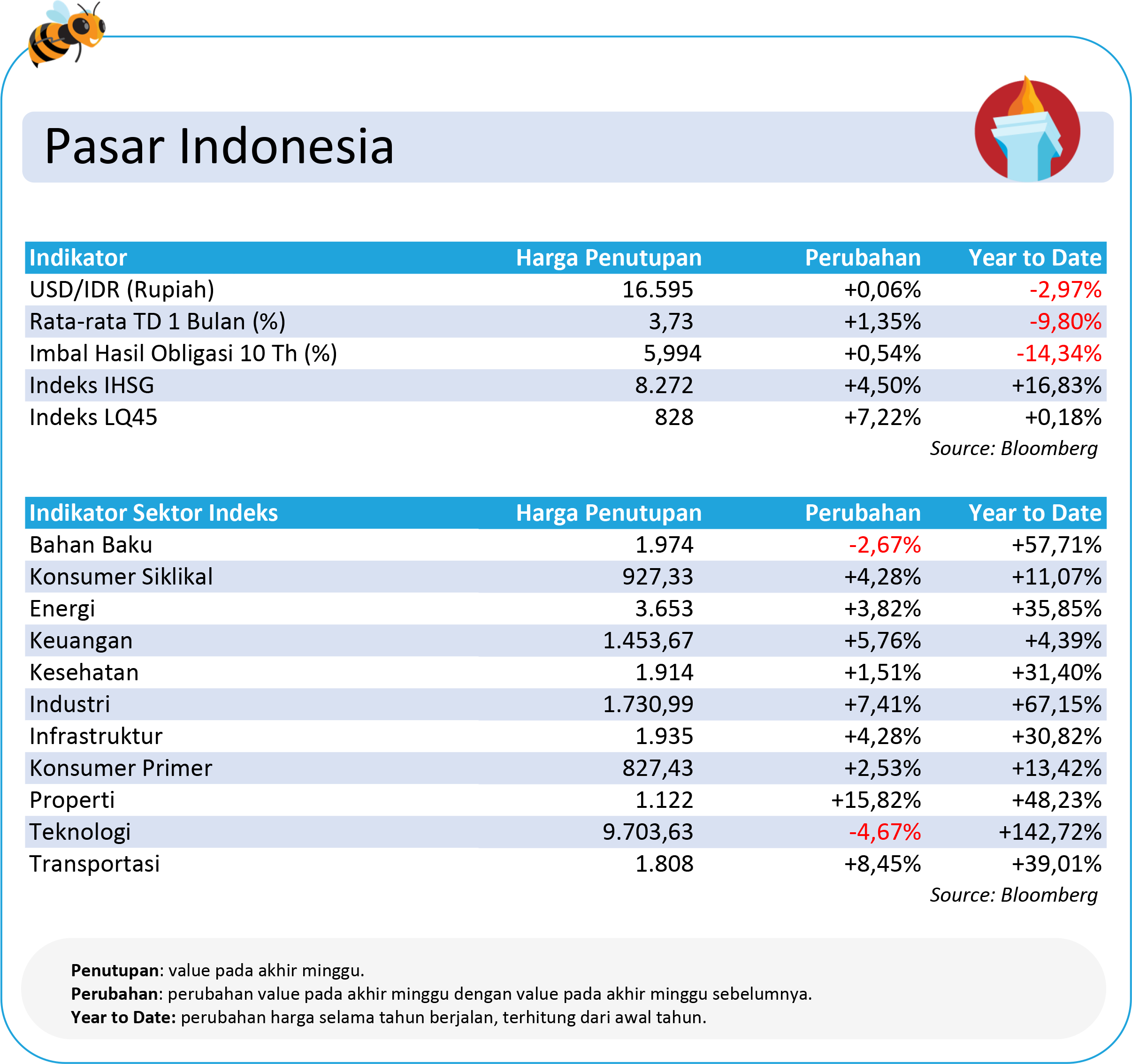 Pasar saham Indonesia menjalani pekan penuh gejolak, tapi ditutup dengan performa sangat impresif, layaknya sebuah roller coaster. IHSG mengawali pekan dengan euforia luar biasa, menembus level psikologis 8.000 pada Senin dan terus tancap gas hingga ke level 8.220 pada Selasa.