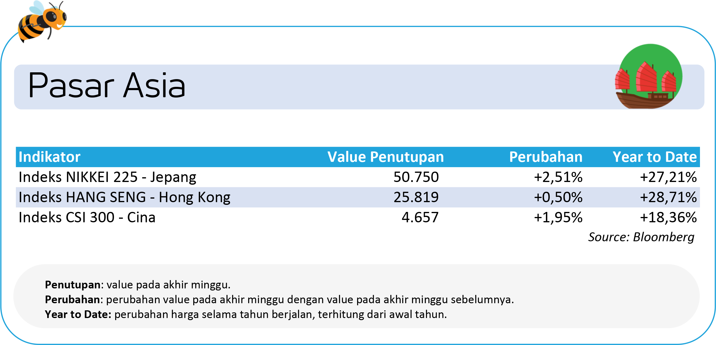 Pasar ekuitas Asia mayoritas menguat signifikan sepanjang perdagangan pekan lalu, dengan Tiongkok menjadi sorotan utama di tengah likuiditas regional yang menurun akibat libur Natal.